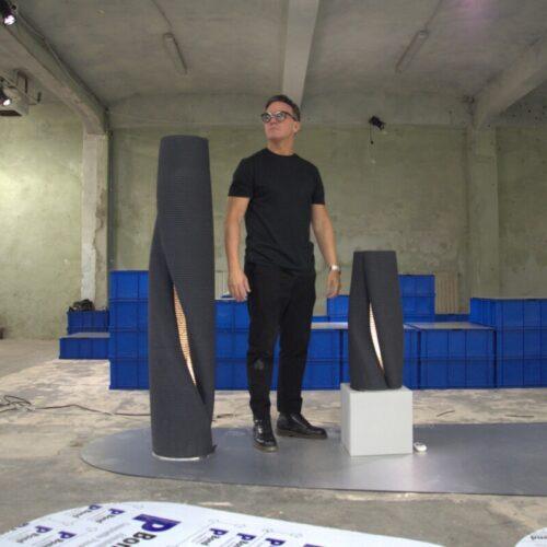 En estos momentos, está desarrollando un conjunto muy original, que traduce en escala pequeña la estructura de una viga. En algunos casos, elige dejar al esqueleto al descubierto, y en otros lo hormigona, tal cual se construye una viga en una obra arquitectónica.