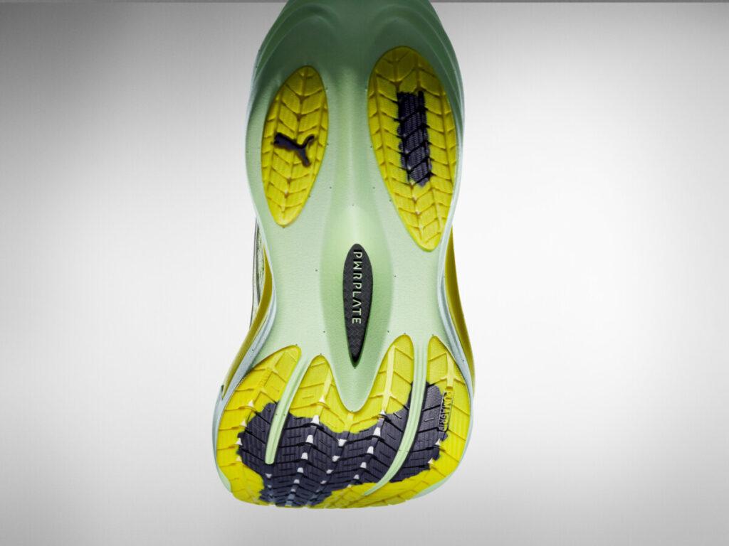 A esta lógica se suma la PWRPLATE rediseñada, cuya geometría más flexible organiza la pisada y aporta estabilidad con una transición fluida. La relación entre soporte y naturalidad se vuelve más precisa, favoreciendo una zancada continua y eficiente.