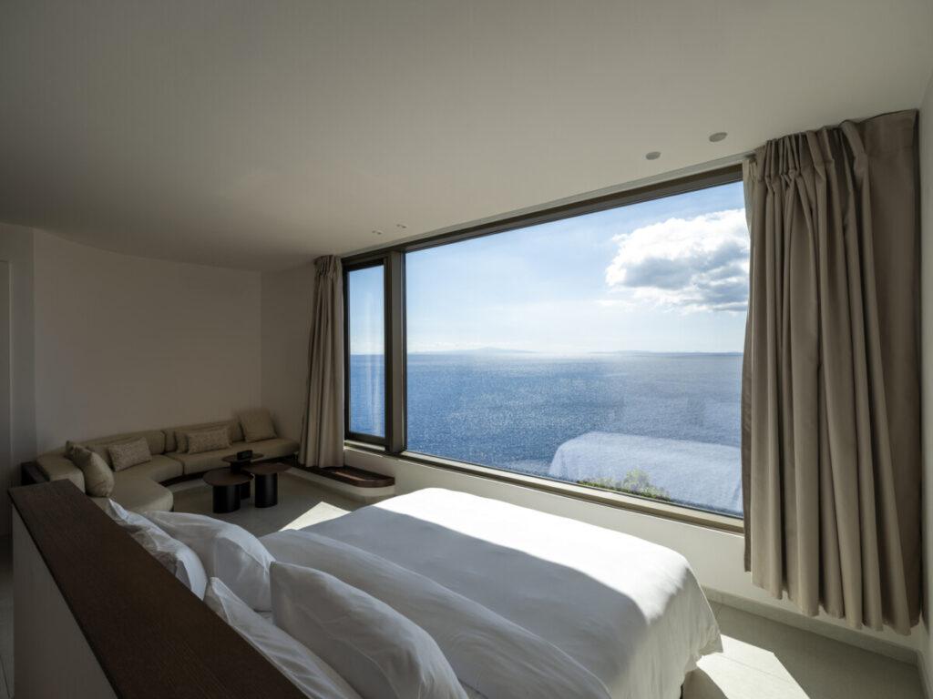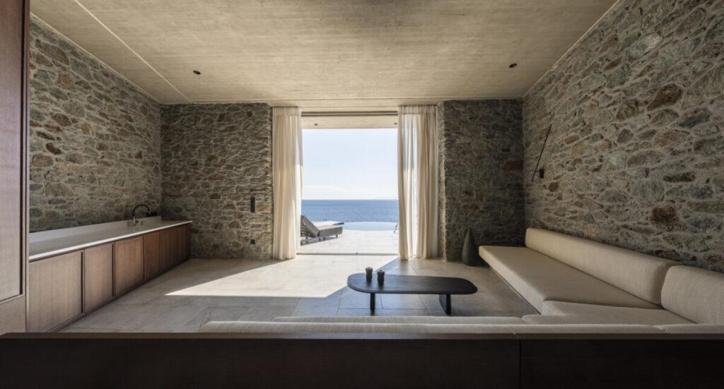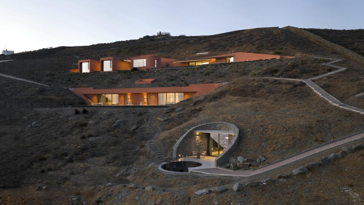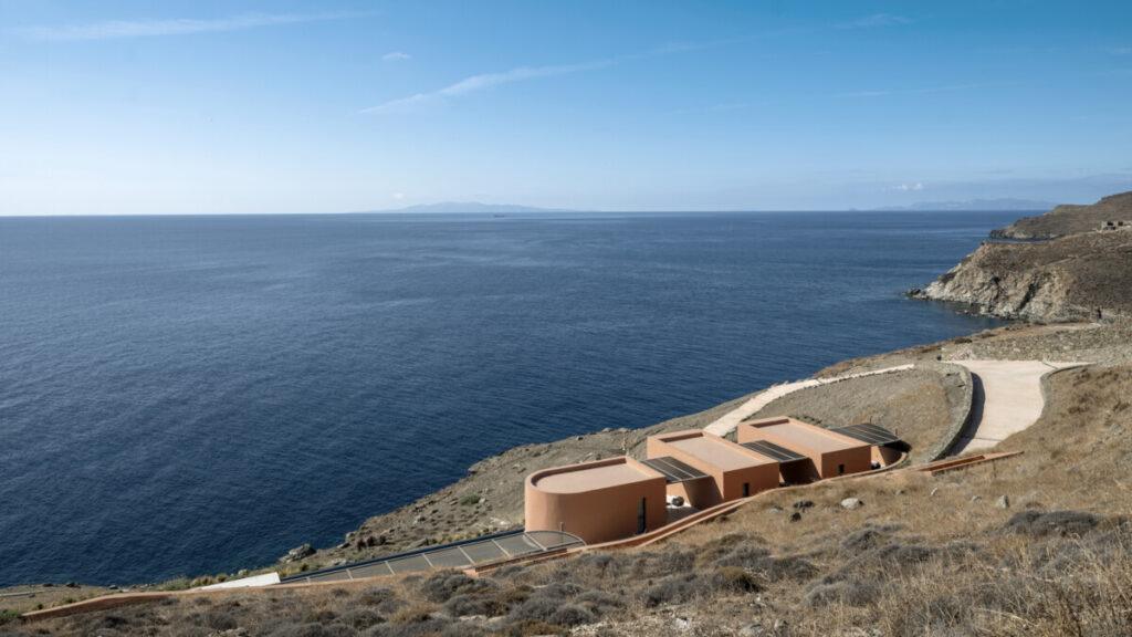 En el nivel más bajo, muy cerca del mar, se encuentra The Point: una casa de huéspedes subterránea e independiente, aislada e invisible para todos. En The Point, uno puede detenerse, escuchar la serenidad de la naturaleza y el sonido de las olas. Con la intención de mimetizarse con el entorno, el edificio está construido con materiales extraídos en el mismo lugar. Solo la terraza circular permanece visible: una meseta con vistas al mar Egeo.