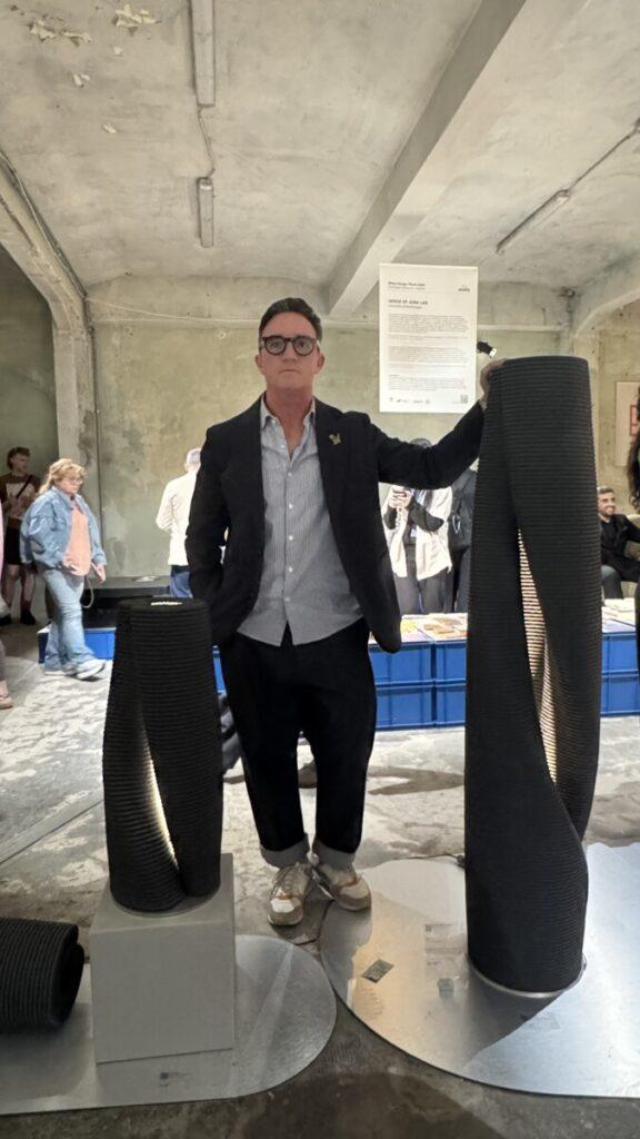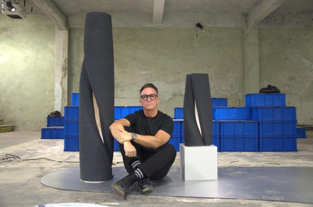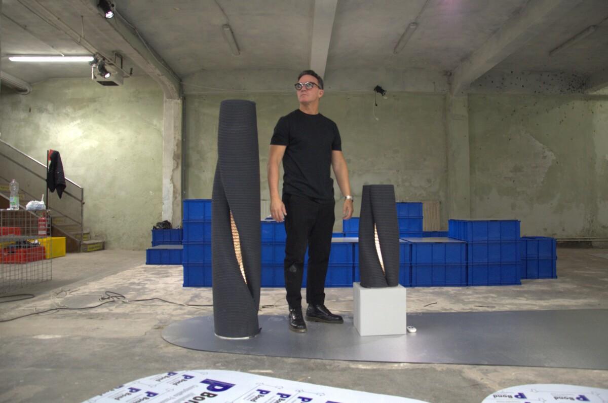 Rodeando las Monolithes Lumineux cual tótems en medio de la histórica Fabbrica Sassetti, el diálogo con Santiago fluye con la misma naturalidad que las capas de sus lámparas. Observamos cómo la luz se escapa por las grietas, mientras Santiago explica cada detalle técnico. Para él, estar en Milán es un desafío que se renueva: tras haber marcado el pulso del diseño nacional como curador en 2025, hoy se permite volver a la esencia de la creación matérica. En esta charla, profundizamos en cómo la tecnología de B&Y se convirtió en el lenguaje perfecto para su nueva búsqueda estética.